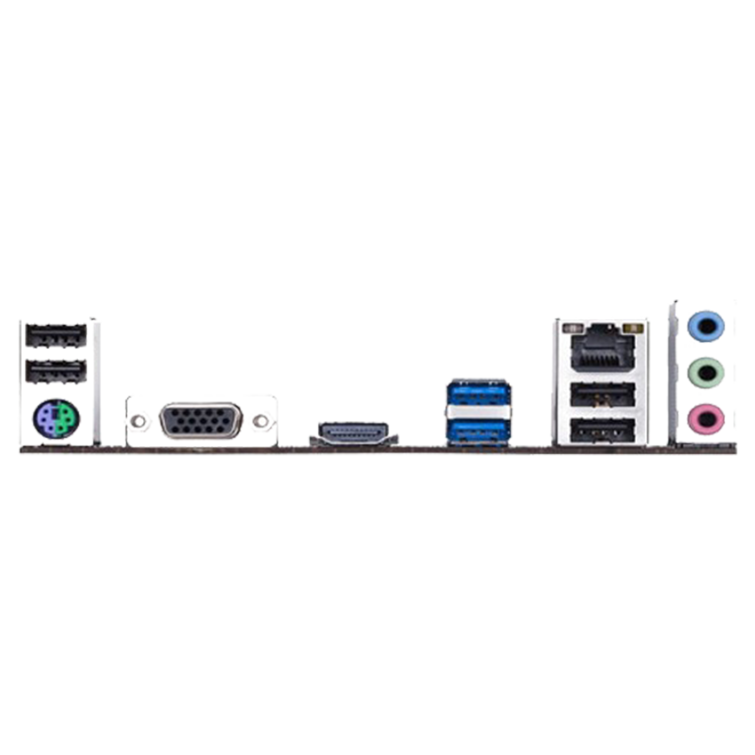 | 4 x USB 2.0/1.1 | 1 x RJ-45 | 2 x USB 3.1 | 1 x D-Sub | 1 x HDMI | 3 x Audio jack | 1 x PS/2 კლავიატურა / მაუსი |